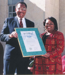 (Tammie Lang Campbell (L-R) Center Front Row Seated) Mayor Lee P. Brown Proclaims January 16, 2003